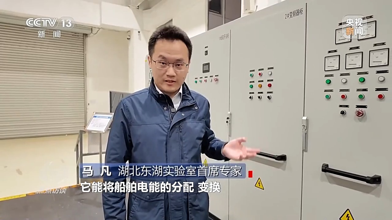 湖北东湖实验室首席专家 马凡:“葛洲坝”号上面先进的技术,是分布式的变配电装置,它能将船舶电能的分配、变换、管理集成于一体,来实现船舶能源智能化的运行控制和调度。纯电动船舶的电池系统以及整个综合电力系统能保证足够安全。