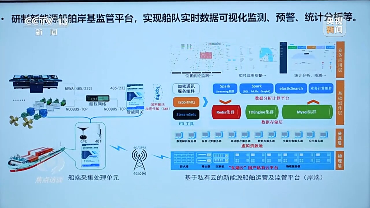 新能源船舶有一套智能数据采集系统,搜集船端的信息和岸端的信息,再应用大模型技术来提供核心数据支撑船舶的实际运行。
