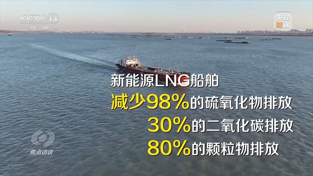 这些新能源船舶的电能也是多元化的,除了纯电力动力,还有LNG、氢燃料、甲醇动力,跟传统柴油同类型船相比,新能源LNG船舶能减少98%的硫氧化物排放,30%的二氧化碳排放和80%的颗粒物排放。