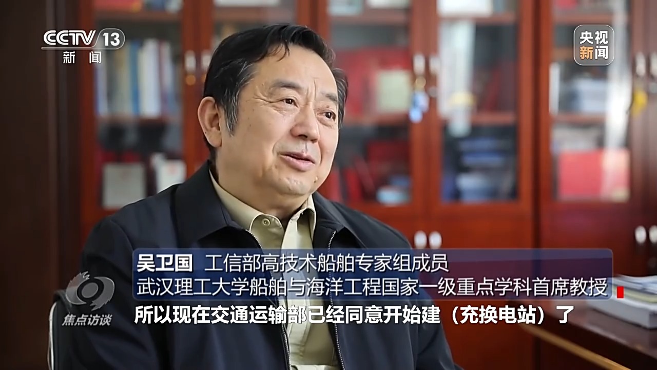 工信部高技术船舶专家组成员、武汉理工大学船舶与海洋工程国家一级重点学科首席教授 吴卫国:现在大家都怕有安全问题,毕竟这是新生事物。本质安全可以做到,现在有智能控制系统保证安全,所以交通运输部已经同意并开始建充换电站了。