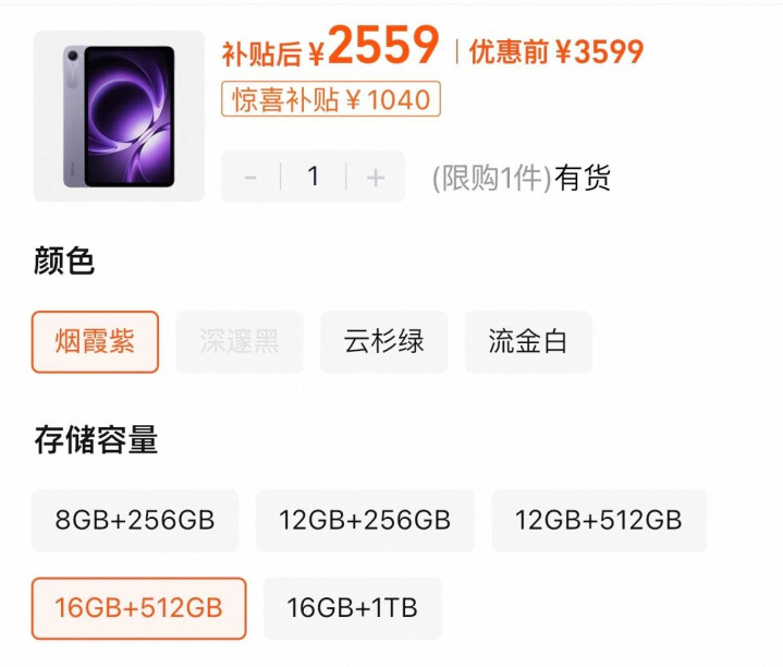 这台红米小平板是游戏性能向的定位,16GB+512GB 降到 2559 元,这个价格也蛮香的,喜欢玩游戏的同学可以关注一下。
